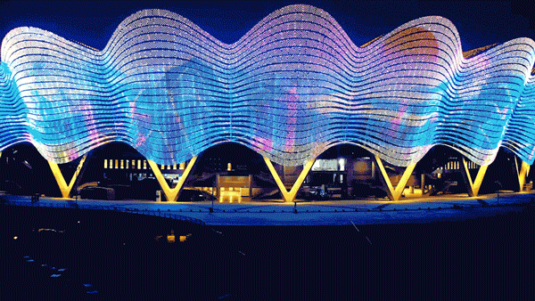 建筑立面的每颗LED点光源都可达到全色彩变化(多达16777216种),并内置微机处理芯片连接智能控制系统,实现单灯精准控制,确保外墙照明效果细腻生动。此外,照明效果可以结合不同场合进行预设,也可以结合季节变换上演四时之景,做到了真正的智能控制、智慧演绎。