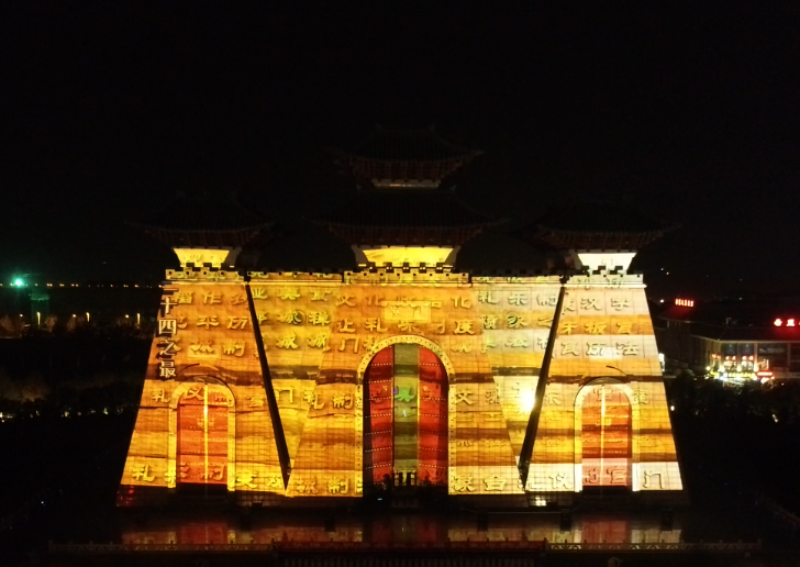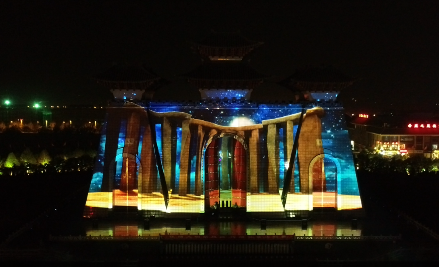 申报作品:临汾华门展演融合光影秀、沉浸式穹顶影院、《上古大洪水》CAVE 影院