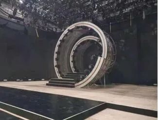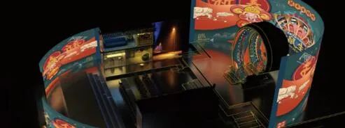 演员从主舞台“@”造型里面缓缓走出时,与投影画面虚实结合,强逆光勾勒演员的轮廓,增强视觉冲击力。灯光与投影的配合,将传统国粹与光影科技相结合,打破京剧表演固有的形式,让多姿多彩的服装得以真实展现。淡入的光照度控制非常低,忽明忽暗,强烈刺激观众的眼球。