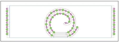 灯光设计既考虑整体协调,又要独立体现。主会场舞美设计为360°全景沉浸式舞台,在整体空间内包含多个独立空间。在不同空间内,通过多灯种、多方位、多结构的组合布光方式,营造不同氛围和环境光。舞台表演区顶层由LED帕灯、染色灯、光束灯、图案切割灯组成;舞台正中的“@”圆形造型由光束灯、LED帕灯、LED变色灯带组成(图3);观众席两侧有“书房”“客厅”,用洗墙灯营造房间氛围,沙发旁放上一盏落地灯做局部照明,房间顶上有一只吊灯做装饰。录制过程中,没有互动时都是剪影呈现,观众席每一张圆桌正上方都有一只电脑灯进行氛围照明。