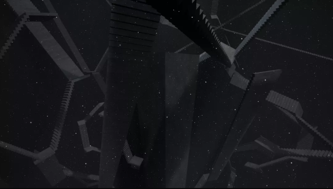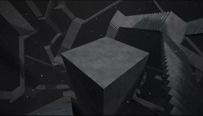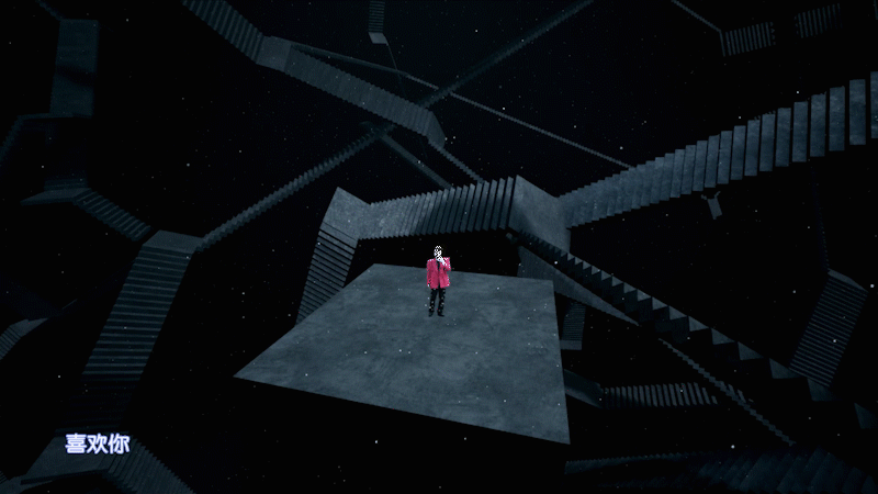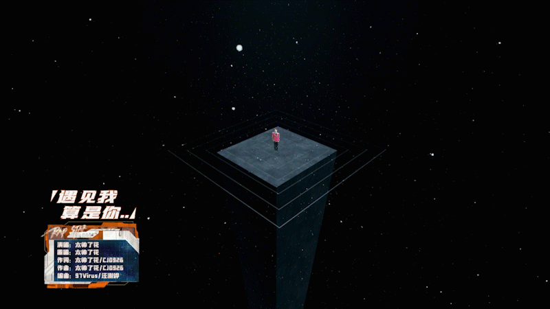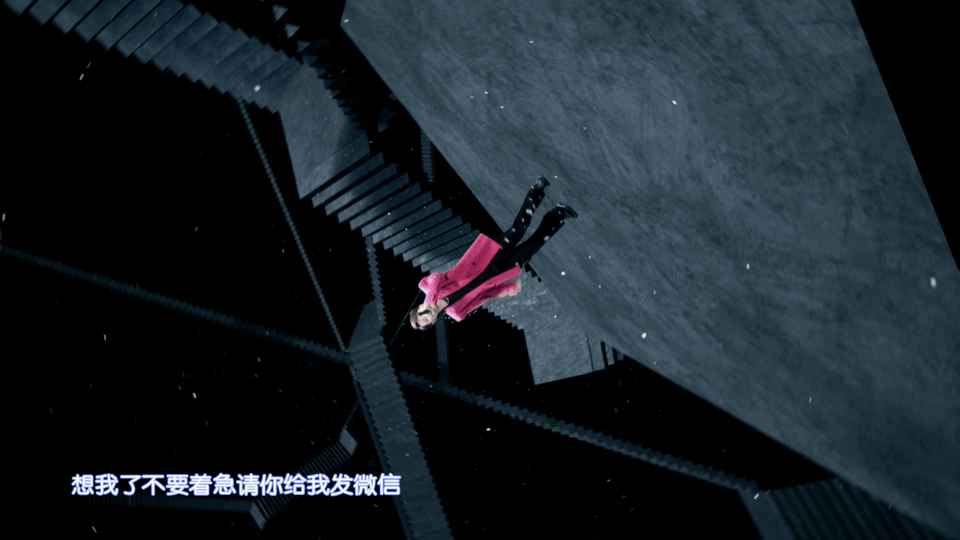 浩瀚的星空中,有无数错综复杂的楼梯,楼梯不知延伸到何处,歌者在阶梯空间中显得渺小又孤独,他想离开这个空间,找回自我。