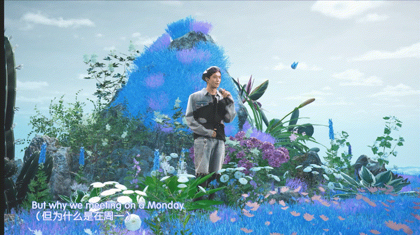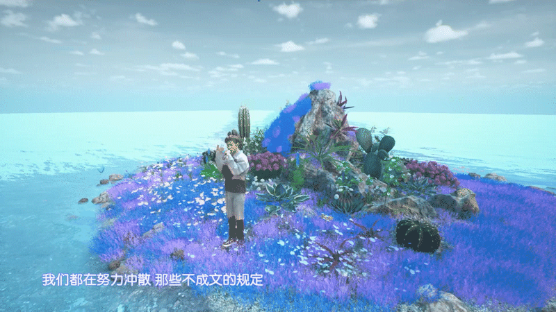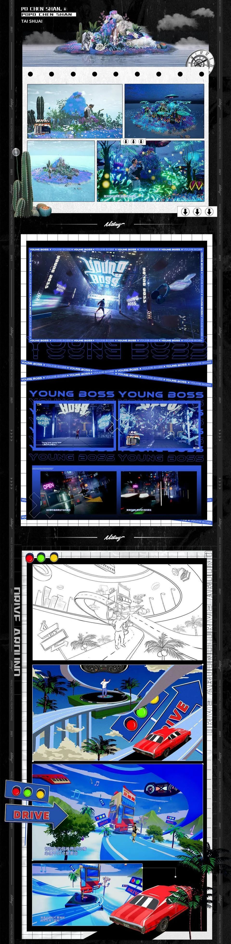白吉勒的虚拟舞台与他演唱的曲风有着异曲同工之妙,设计师为他设计了chill一点的视觉风格。