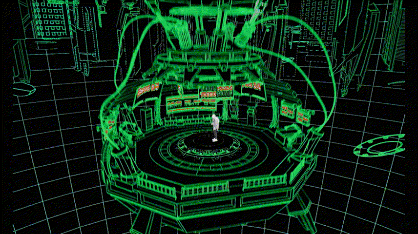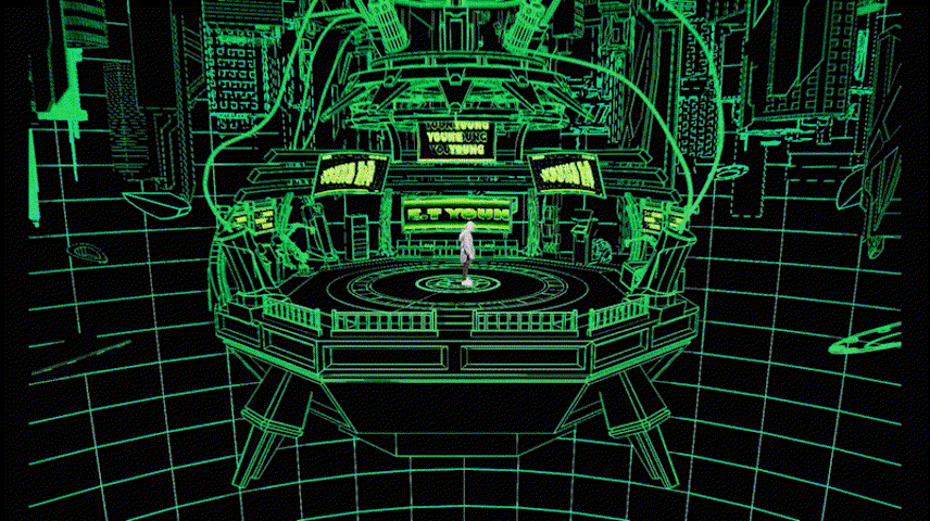 在这座科技之城里,有一个的实验室,演唱者站在实验室的中心,地面的中心是一个飞行器,随着飞行器上升,看到了巨大的城市。