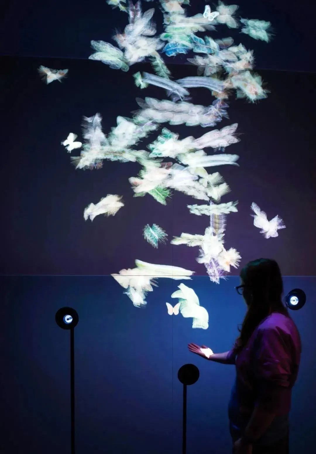当观众面对装置说出自己愿望时,原本抽象的语音便会转化成可以看到的蝴蝶在空中飞舞,并且不同的愿望对应的蝴蝶颜色和形式也不同。