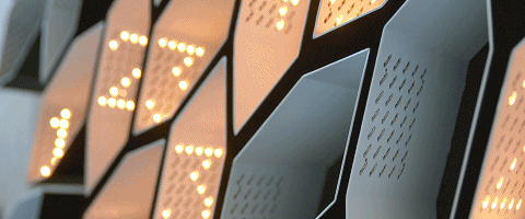 这是一个关于探索数字化自然现象,探讨人、自然和健康之间的关系艺术装置。由293个数字单元组成,这些数字单元横穿墙壁,扩展了传统植物的概念,通过定制相机观察着放置在艺术品下方的一系列植物。