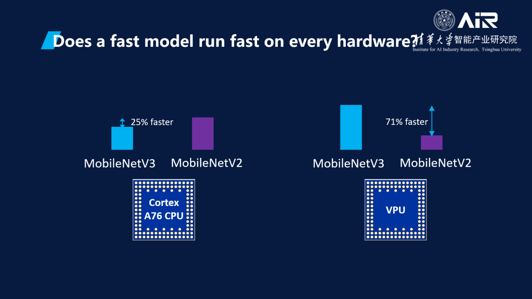 首先,我们要想是不是模型的计算量少就拥有较小的延时?是不是相同模型在所有芯片上都能高效运行?
