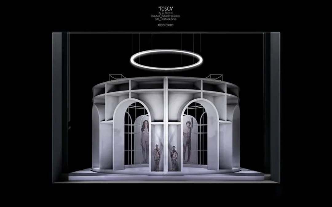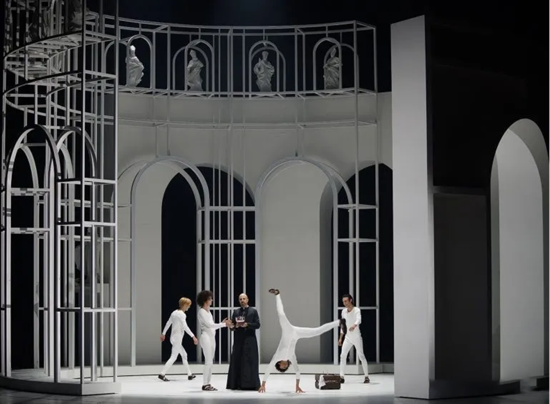 舞美设计师Emanuele Sinisi(伊曼纽尔·西尼西亚)在罗马学习和工作了十年,认为自己深陷于这个城市。从早期的设计阶段,他就有一种独特的感觉,那就是使用一种雕塑和建筑的结合,这种艺术风格在他过去的时间里就已经在他身上沉淀下来,从布拉曼特和贝尼,到古典建筑和意大利理性主义。他设想舞台布局的目的是恢复其绝对价值的内在纪念碑式的舞台建筑。