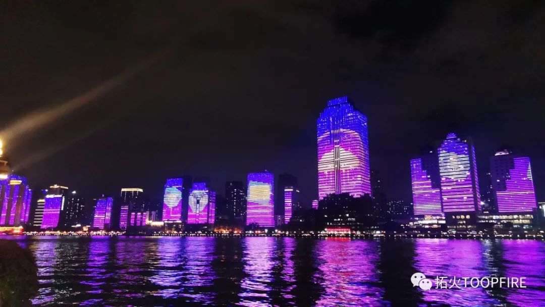 广州拓火科技非常荣幸参与此次灯光秀的动画设计和制作,围绕“广交世界,互利天下”的主题,以广州市花木棉花、广交会会徽、广交会吉祥物、地球、和平鸽、智能云、科技元素等图案串联成广交会65年来的历史发进程。江面上光影交错的灯光给广州夜色增添了几份灵动之美,璀璨的江景如同流淌在城市夜空中的美丽画卷,一场视觉盛宴正在珠江畔边拉开。