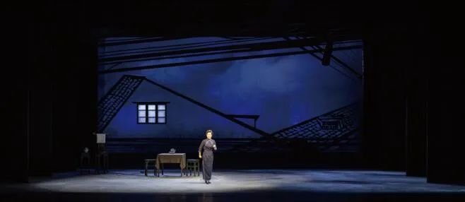 经过与导演卢昂教授的沟通,舞台美术遵循“总体大写意、局部有写实”的设计思路。“总体写意”是指舞台美术整体采用写意手法,在体现人物命运、表达剧本精神的同时,符合戏曲的表现手法和审美原则;“局部写实”是指舞台上的细节,包括布景、光影、道具、服装、人物都要体现生活真实和历史写实。这部现代京剧讲述的是谍战故事,对于一部谍战主题的作品,观众的“相信”很重要,在细节处尊重史实,按照规律办事,不盲目混搭,有利于坚定观众的“相信”,提升作品的品质和观赏性。本文主要结合剧情及舞台设计,分析该剧的灯光设计心得及效果呈现。