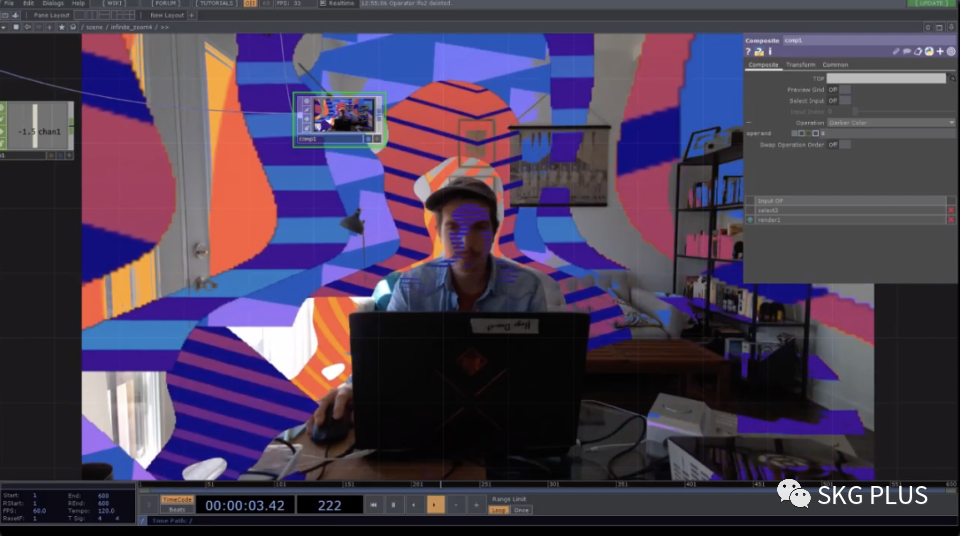 MF 邀请了当地的说唱明星 KNLO 一起合作,KNLO 的运球技术十分高超。MF 在 TouchDesigner 软件中设置了一个视觉效果库,可以沿着球员和球的运动触发球场投影内容。这个设计可以达到超级好的视觉效果,KNLO 的所有运球动作都可以被快速地,低延迟地追踪到。通过这项发现,MF 开始探索不同的运动设计,并融合了多用途的元素,例如烟雾,灯光等等。