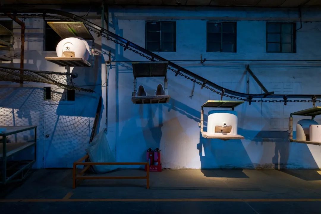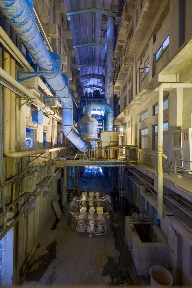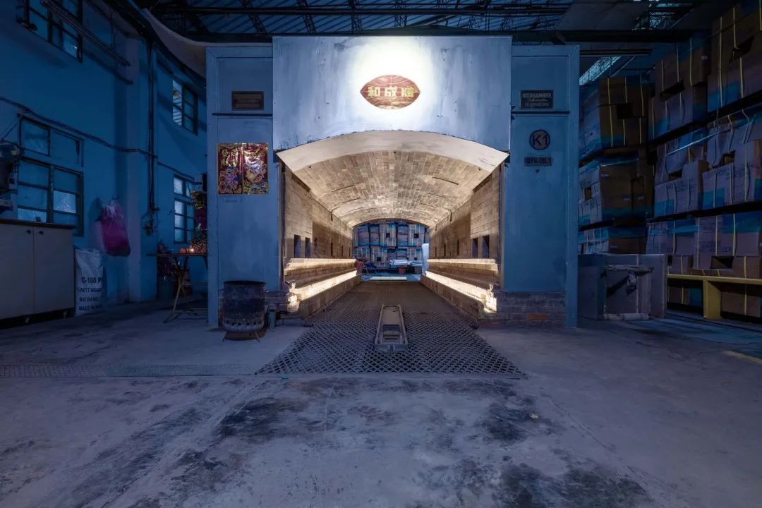 当光线打进数十年不变的场域里,无论是输送带上的半成品,全台最大的150米隧道窑机具,隐身在建筑物间的吸尘机大型量体,抑或是制程场景里的工作空间或是楼层间不为人知的空间介面与角落。