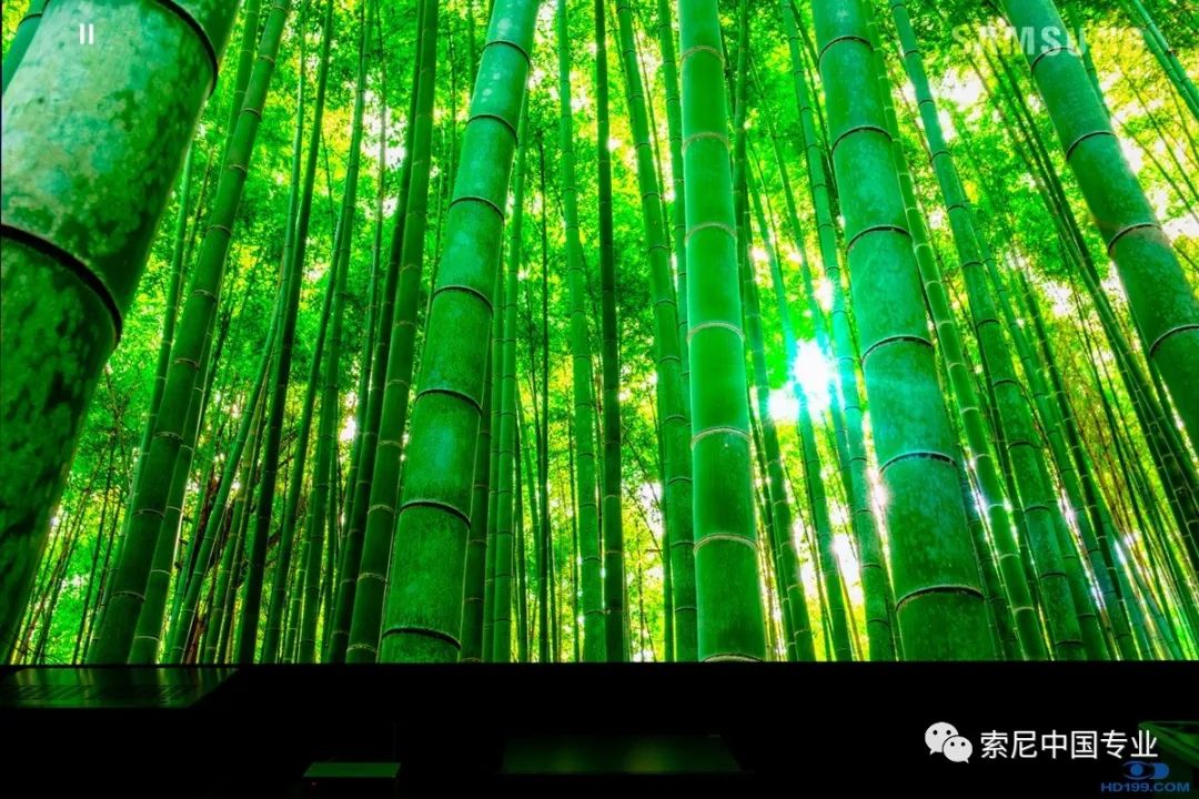 下图是拍摄的图片可以看一下VW298在HDR下的表现,阳光透过竹林的亮度很足,亮度层次感很好,在现场看这个阳光真的是感觉亮瞎眼一样。第二张是上图的截取放大,放大图也可以看出真4K投影画质细腻的威力。