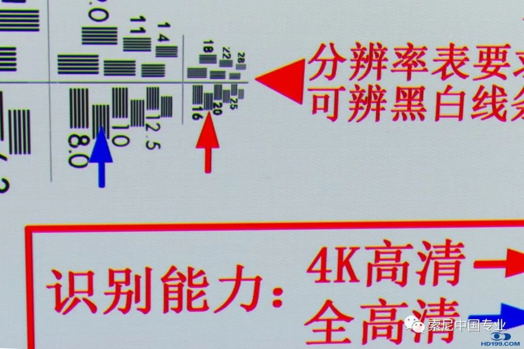 调整及聚焦后的文字如下图,按图所显示,达到4K的分辨率标准,但由于我的是编织透声幕,白底放大了看幕布网眼还是开始明显了。