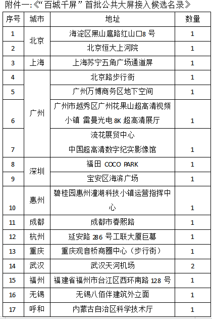 据了解,《“百城千屏”首批公共大屏接入候选名录》以及国内8K LED显示屏制作商名录已经公布,包括利亚德、雷曼光电、联建光电、洲明科技、奥拓电子、上海三思等都入选了22家企业组成的8K LED显示屏制作商名录。可喜可贺。