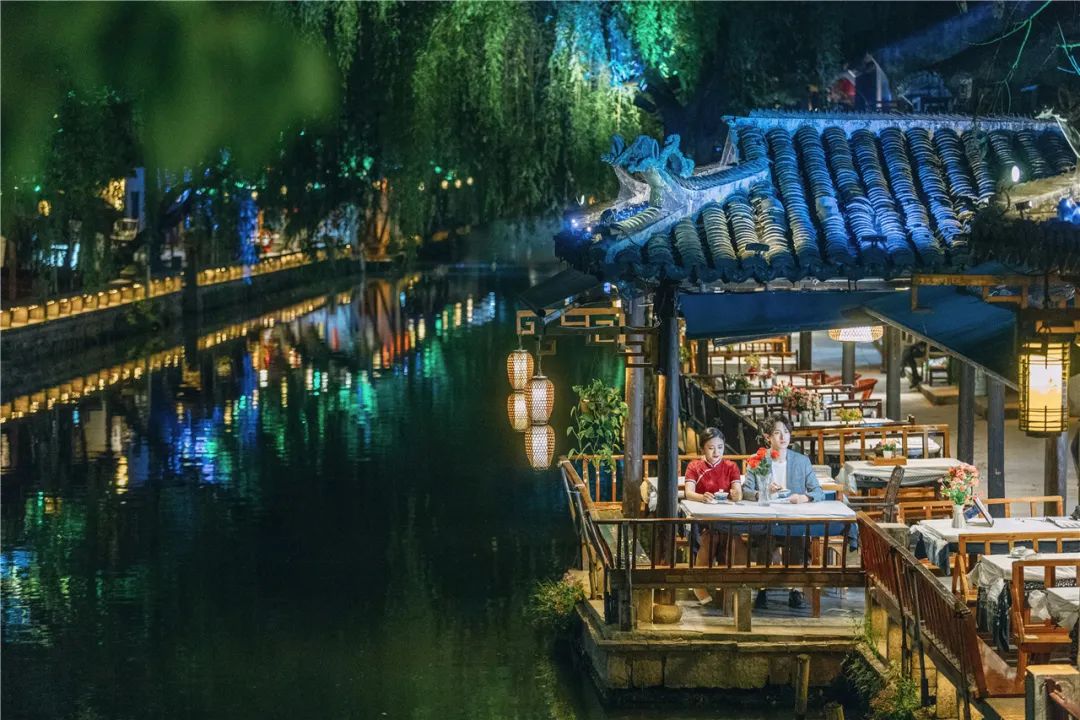 夜周庄集成在地特色文化、丰富文旅业态、创新体验场景,旨在以产业集群空间形式推动夜间文旅消费发展,在空间和时间上极大地延伸了文旅消费链条。
