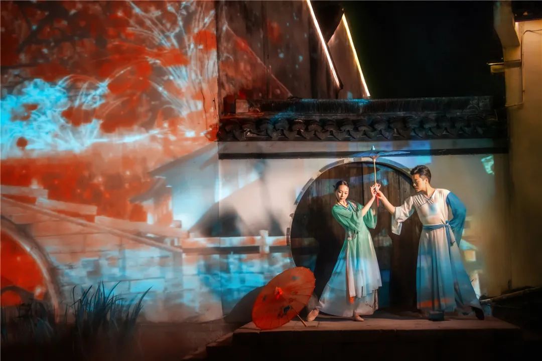夜宴所列,沈厅酒家“万三家宴”、1086慢生活街区“长廊宴”,古镇版“深夜食堂”活力呈演;十二坊文创夜市,质感购物体验叙事传统匠心。夜戏是四季周庄,亦是古戏台水磨昆腔......