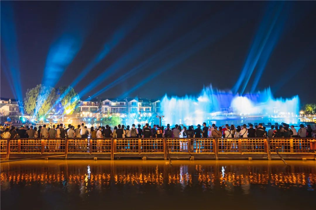 鱼池岸沉浸式互动光影秀再现吴地渔文化,五福之林韵味光影将沈万三传奇故事娓娓道来,汉服跨界潮玩国风精彩轮番上演......