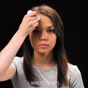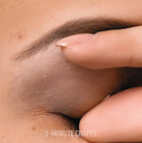 用固体胶在额头上作打底,再用笔端在胶上划一道