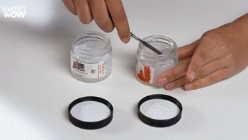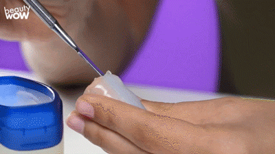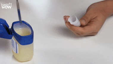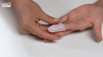 接着在假手指头里放入凡士林、眼影和混合胶水的粉底液填满整个指头