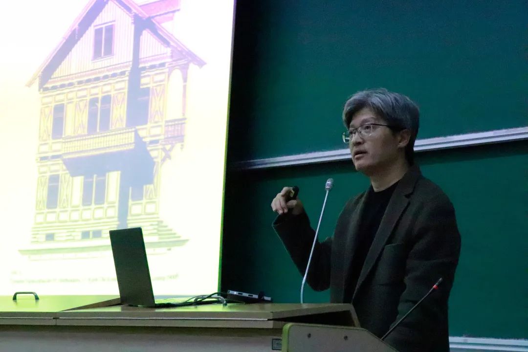“中国建筑体系的建构,就不得不提到梁思成与林徽因,从1929年中国营造学社成立开始到之后的很长一段时间,营造学社对于中国古代建构体系的延续起到了不可或缺的作用”。除了提到古代木构建构体系的延续,谭刚毅教授还提到了现代木作技艺的创新:“随着时代的发展,如今参数化、数字化建筑生成可以逐渐代替传统木构的算法。甚至可以将某些传统技艺,比如编织,来传承我们建筑的创作,以此发掘出现代木构更多的可能性”。谭刚毅教授还以李保峰老师的建筑作品为例向同学们展示了现代木作的全新演绎。基于如今互联网时代与共享经济时代的冲击,谭教授提出一个思考:如今的建筑模式以及制造模式是否会有新的可能?以WIKI HOUSE为例,WIKI HOUSE提出“让每个人都能建造自己的房子”,所采用的材料和结构类型分别为木材和榫卯结构。“在今天这个时代背景下,木构建筑更有它的价值所在”。在“碳达峰和碳中和”的目标下,木构建筑更是凸显其重要性。