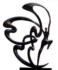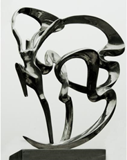 流畅自由的线条,优美灵动但又刚强的形体,将抽象与具象风格巧妙融合。在这里,雕塑仅仅是她借用的一种形象媒介,正如艺术家周思聪所说:“万物皆备于我,不求物象,但求心象。”不拘小节的表现,简约而高贵,使作者可以自由地对形体、空间体积、线条进行表现,进而充分展现内心的述求,并传递出那种激情奔放、自由翱翔的豪放气势。