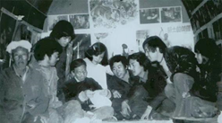 中央工艺美术学院86级研究生在陕北考察民间艺术(左五为孙嘉英)