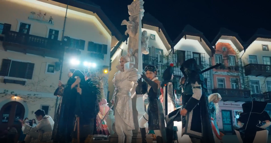 这里是沉浸式夜游《女王的盛筵》,这里是广东惠州,五矿·哈施塔特文旅小镇——