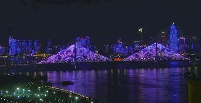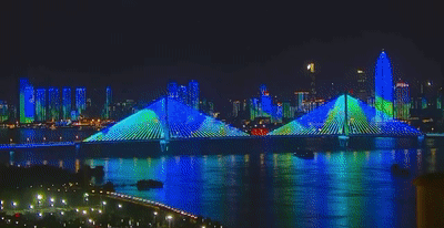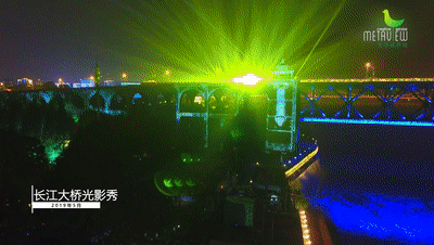 2019年4月30日晚,光影交互服务技术文化和旅游部重点实验室与麦塔威科技承办的“致敬劳动者”——暨两江四岸“长江灯光秀”启幕秀以长江大桥至长江二桥为核心表演区域,以长江大桥桥头堡、引桥外立面为“画布”,两岸楼宇、桥梁、黄鹤楼、蛇山、龟山电视塔等亮化设施配合大秀按编好的程序共同演绎一场美轮美奂的光影秀。