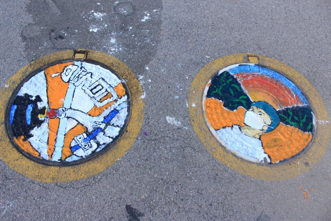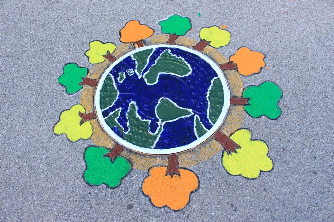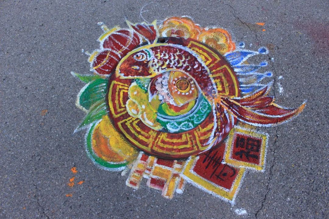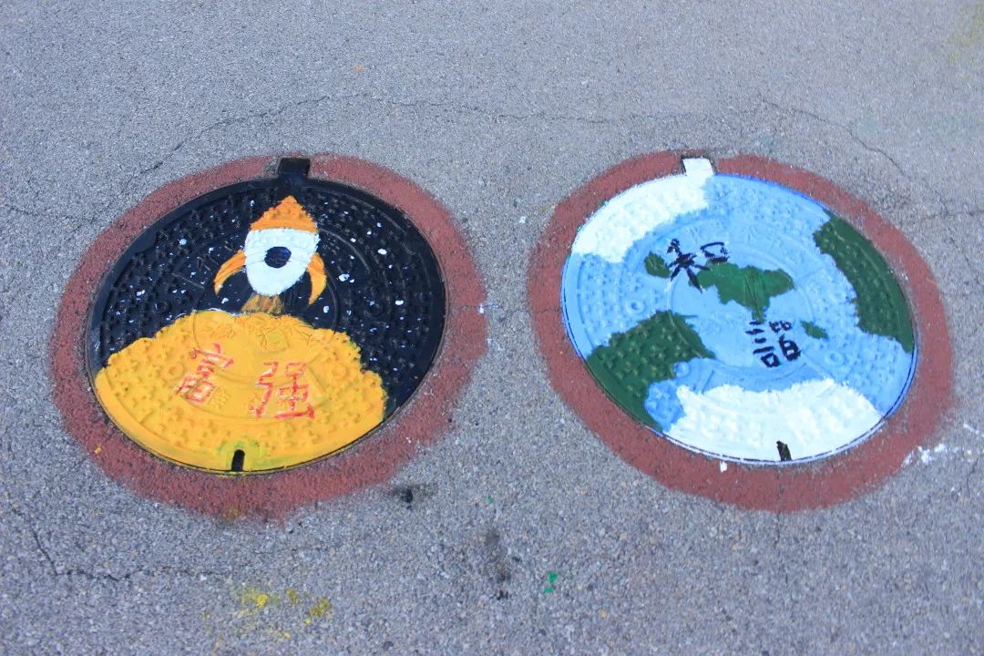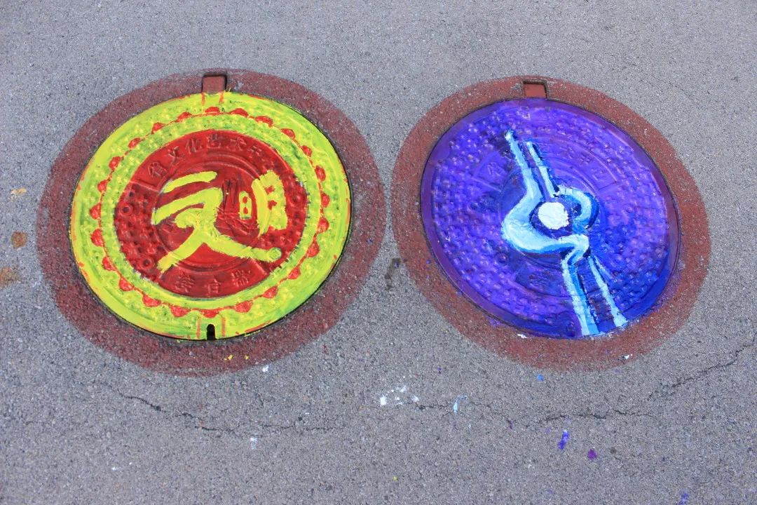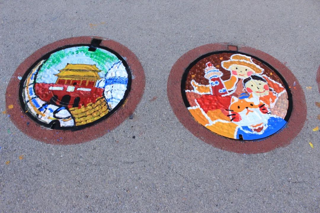 在活动过程中大家创作了许多富有特色的黑板报作品和井盖画作品。志愿者们通过作品创作,展现出新时代大学生的共同理想与美好愿望,体现了同学之间互帮互助、友好合作的深厚友谊。
