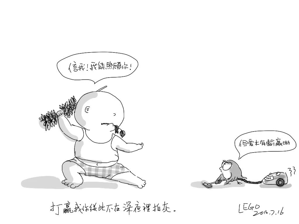 画于2014-2015年,集成的小册子《画给孩子的话》《宇宙真理大全》,收录于2020出版的第二本漫画集《光头仔:你知道,我是认真的》。