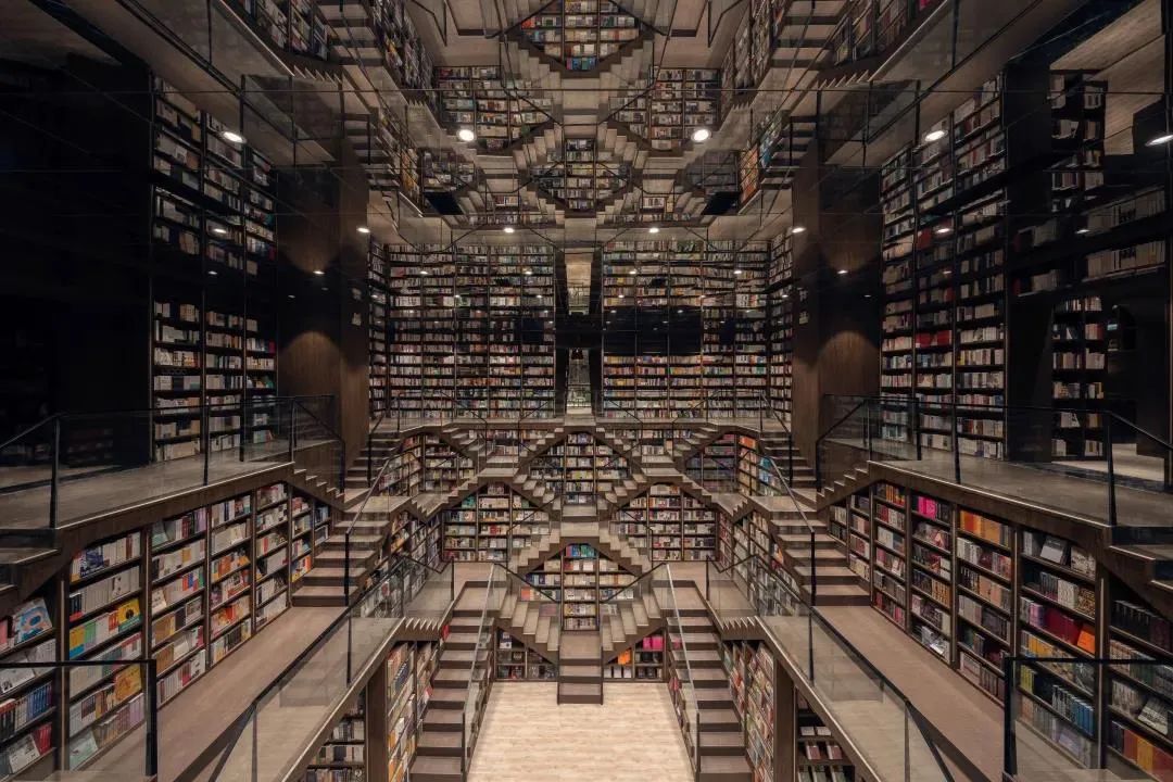 在杠杆平衡的时候,一边是实用、功能性,另一边是品牌、产品本身。处于本质化的状态,众人对它的认知皆来源于刻板印象:这里是一间书店,有好用的书架,能安放好一摞摞书,有购买的动线即可。李想用设计撬动了甲方手里的杠杆,将商业价值赋予空间,共同让濒临危险状态的线下书店,起死回生。在颜值经济时代,掌握了求生必要手段后,钟书阁成为网红书店的典型代表。每一家门店于所在城市都变为热门打卡地。重庆钟书阁,把魔幻8D山城装入书店,行走于山行阶梯,穿越书海。