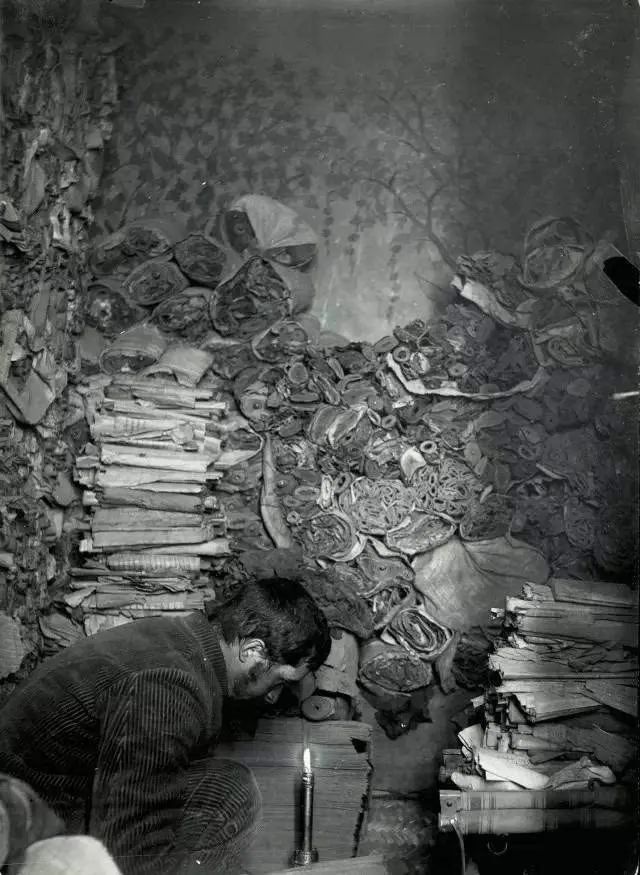 第一个卷走我们经书的英国人斯坦因,拍摄了这张藏经洞经书照片。
