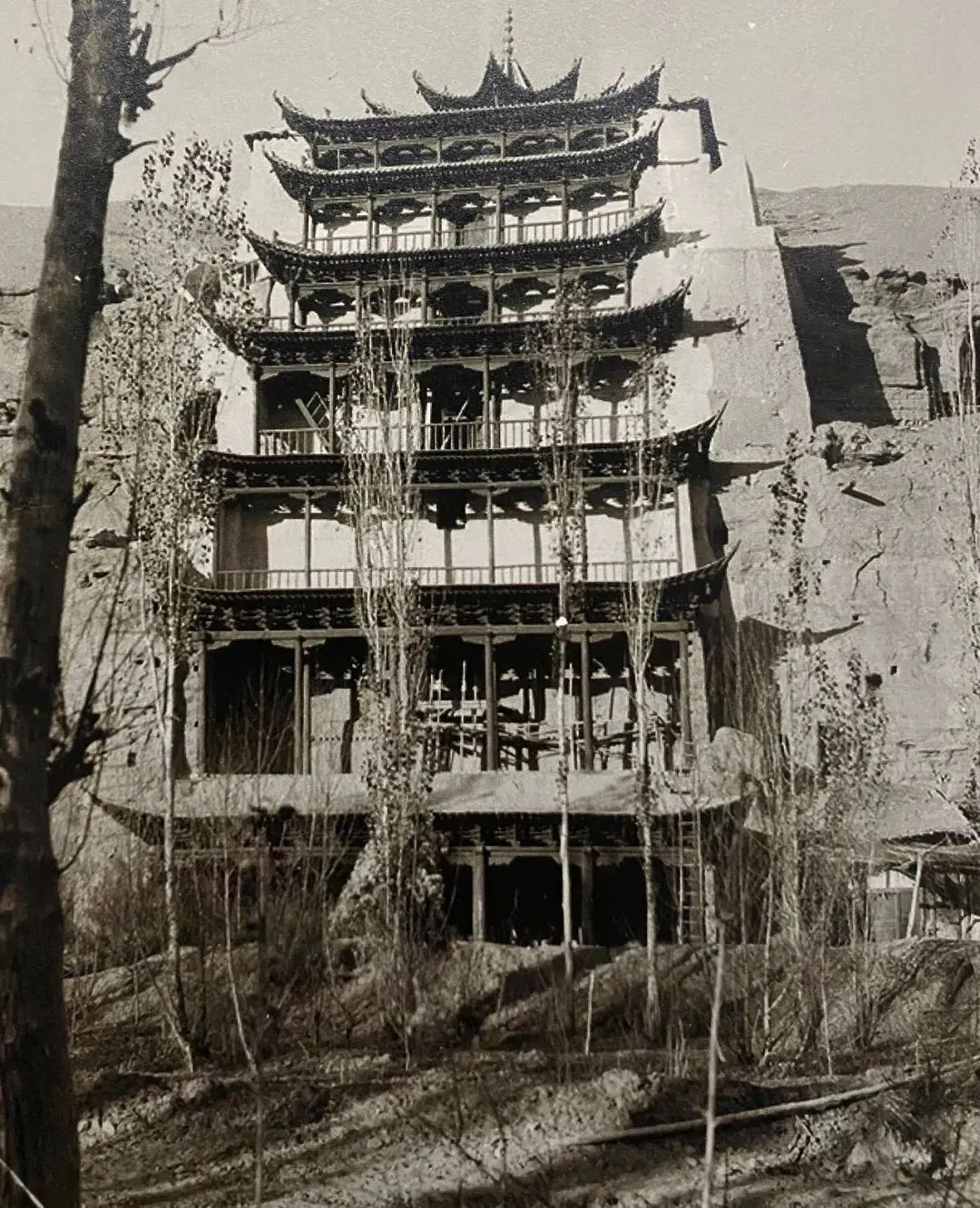 ▲九层楼的第一张照片,1934年11月6日,斯文.赫定摄。图/《世纪敦煌》