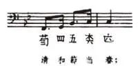 纵观其调式的布局:bB→C →bB→b(B(bE,交替)→E→(G,单簧管)D→(G,小号)bD。所采用的bB调与琴歌相一致,音乐的情绪亦十分相似,虽然最终结束于bD调上,但落音在bE音(商音)上,似乎与琴歌的bB宫C商调暗合。