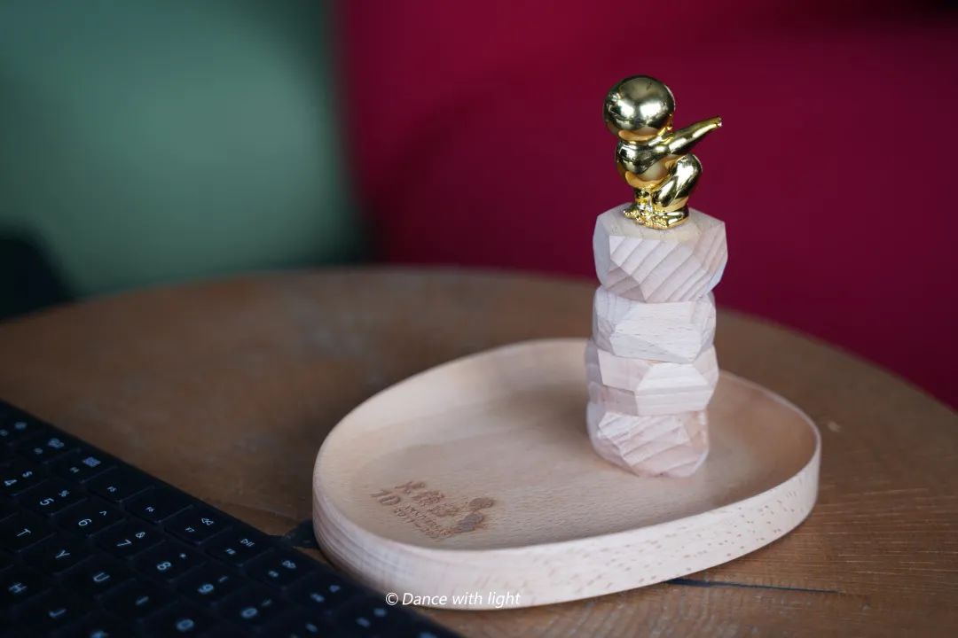 一个木块有时候并不见得会高很多,但是能高一厘米就会高一厘米。体现在“上山 peak”的木块和金色光头仔上,与艺术家左小祖咒的作品“为无名山增高一米”的表达很像,传递着一如既往的黑色幽默。