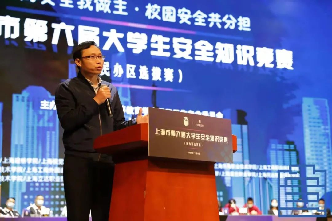 我校党委副书记、副校长俞振伟代表全校师生向各位嘉宾评委以及各大高校师生表示热烈的欢迎。他表示,上海市大学生安全知识竞赛成功举办6年以来,获得了全市各个高校近75万人次的大学生热情响应,营造了良好的高效管理育人,安全育人的良好的氛围。我校按照市教委的工作要求积极配合,扎实推进校园各项安全工作,在各个部门的精心努力下承办此次竞赛,希望大家本着友谊第一,比赛第二的宗旨,将校园安全知识和技能传播到身边更多的师长和同学当中,在做好严格的疫情防控的形势下,预祝各位来参赛的同学取得优异的成绩!
