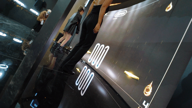 T台部分可以拍照打卡,这也是线上H5互动里面的一个游戏的具象化。