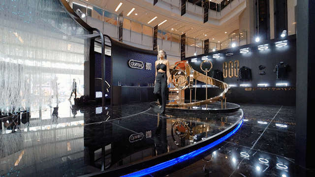无论是ABCD任意一个选项,都会带来不同的结果,最后001街区发出邀请,去线下快闪店继续打卡。2021年10月28—30日,杜蕾斯与先锋设计师品牌Feng Chen Wang联名打造的跨界限时快闪店登陆上海。王逢陈素来以富有结构功能性的中性设计风格闻名,而这次的合作主题将「凤凰」作为精神内核,融合durex 001的黑金元素,表达多元个性张力、微妙的联结与和谐。整个快闪店现场的设计都是满满的黑金色调,简约高级不失个性。