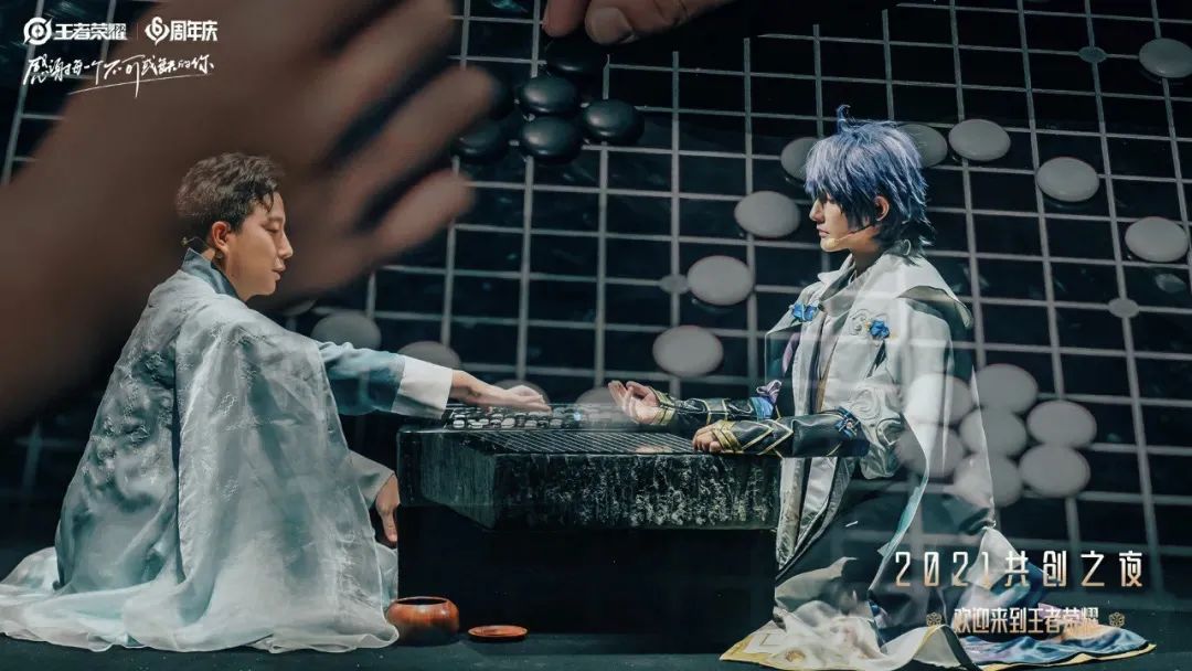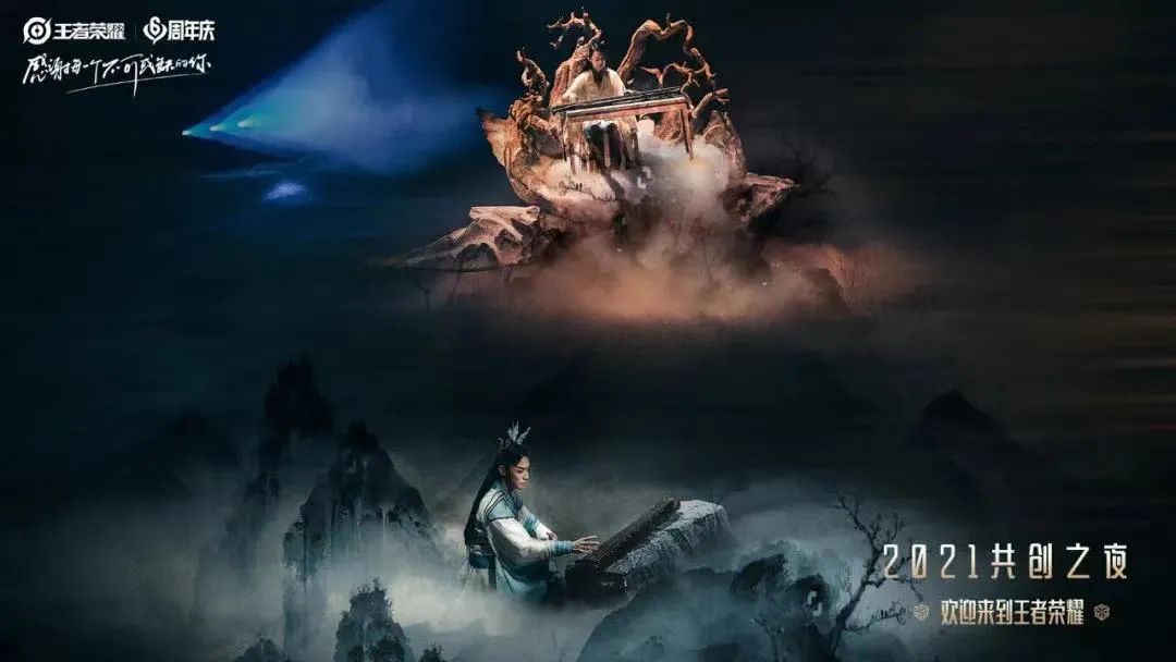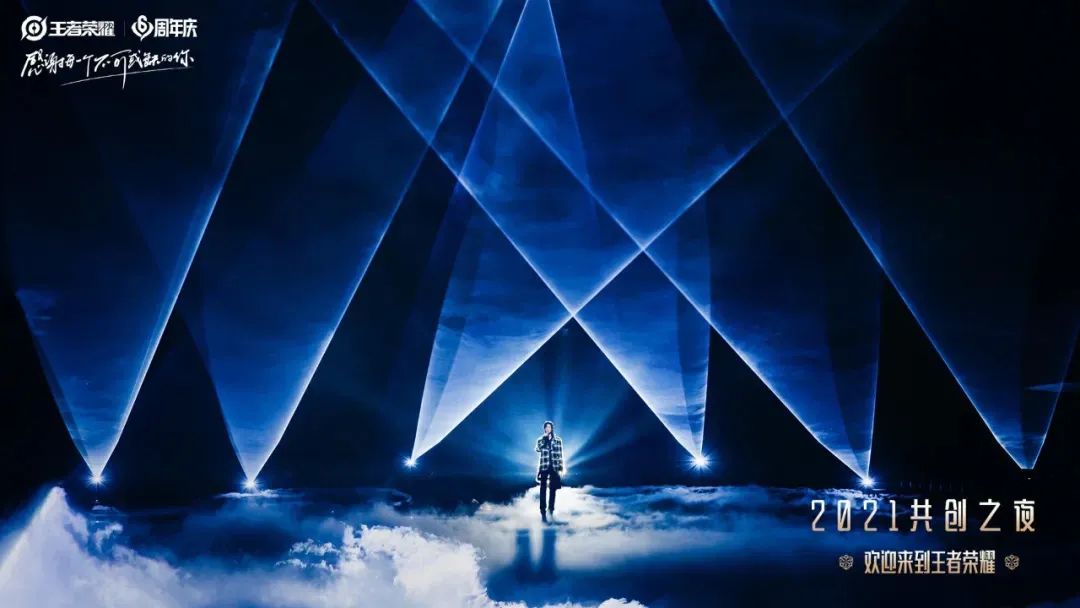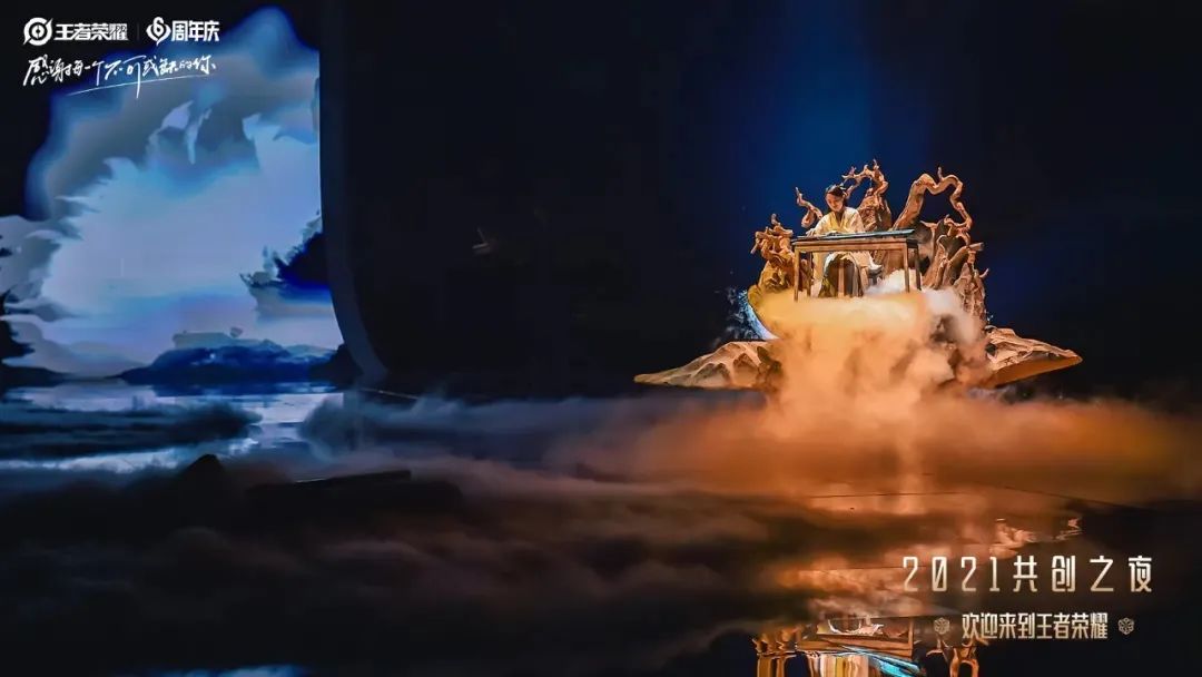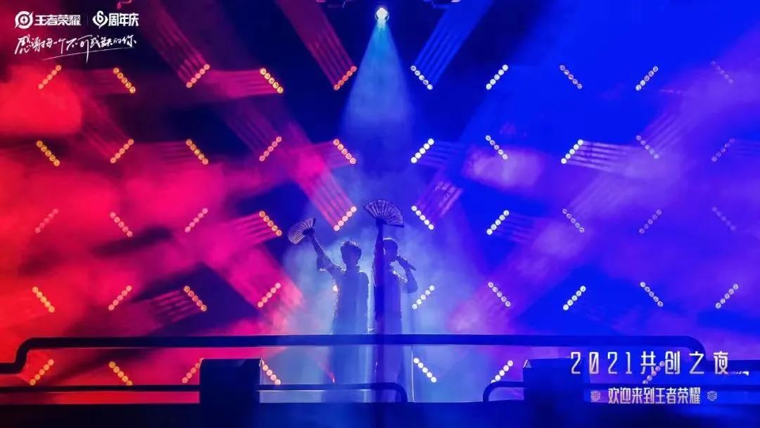 本场晚会由王者荣耀出品,hofo旗下全新创意厂牌MAXMAD负责总制作。在近半年的项目筹备过程中,王者荣耀主创团队一直深入到创作一线,与导演组进行内容共创,意在打造一场以王者荣耀IP为内核,以传承中华文化为己任的富有东方美学的视听盛宴。节目选取歌舞、音乐剧、古琴演奏等多种表演形式,将传统文化与现代潮流相结合。MAXMAD是2021共创之夜的总制作方,总协调韩义、制作人张丽萍从 2021年 5 月开始 ,就带团队正式成立了MAXMAD导演组,并引入优秀导演资源,逐步完成主创团队搭建。导演组在创作过程中深度调研王者荣耀的世界观、IP共创及用户表达,腾讯主创们意在让共创之夜的每一个细节都能击中用户的情感共鸣。MAXMAD(北京麦可麦德文化传播有限公司)是hofo于2021年成立的独立创意厂牌。因为我们知道做一场晚会很容易,但要做到“强定制”和“强共鸣”很难。在半年的时间里,所有主创团队进入王者荣耀共创之夜的第一门必修课是深度了解王者荣耀IP设定,不论哪个部门,不论什么时间进组,从导演组、舞美组、灯光组,到视觉组设计、AR虚拟组……这场晚会核心主创团队总计超过 80人,现场执行人员超过1500人,执行总统筹李钇澄在协调和规划每一个细节时,都感受到了一个巨大项目组将要集体面对的压力,如何平衡并调动各方资源协作也是一个前所未有的挑战。如何在最大化演绎王者荣耀IP内容时有“新的突破”?导演组的创作原点是,如何做一场既能很好表达王者荣耀IP又能有“新突破”的晚会?从活动定调开始,晚会的观念就要有所突破,于是我们请到了艺术顾问黄辉。黄辉作为2018平昌冬奥会8分钟的核心主创以及2016“G20峰会”《最忆是杭州》的执行导演,对于大型晚会有着独特的观念和感悟,目前,黄辉也正在紧锣密鼓的筹备2022北京冬奥会。 “不是一个人的王者,而是团队的荣耀”
