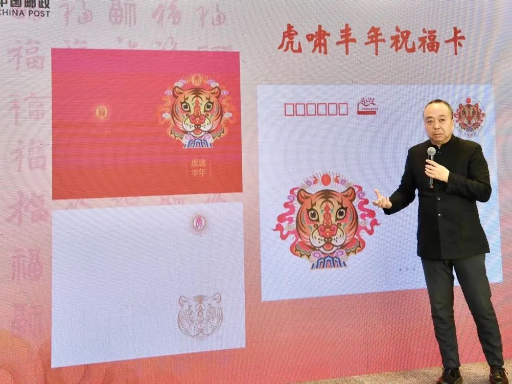 2021年10月27日,中国邮政发行2022年壬寅虎年贺年有奖明信片《虎啸丰年》。全套包含邮票、信封及新年贺卡,主题为2022年生肖虎,体现年节气氛及虎年吉祥安康,由清华大学美术学院视觉传达设计系教授王红卫与他的研究生苗慧共同设计。