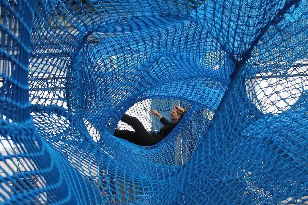 蜘蛛吐丝编成蜘蛛网,来捕获昆虫作为食物,或是结巢居住。人类模仿蜘蛛网,建造了脑海中的游乐场,极尽童心玩耍之乐。你是否也曾想象过,像蜘蛛一样穿梭于各种错综复杂的编织网之间?