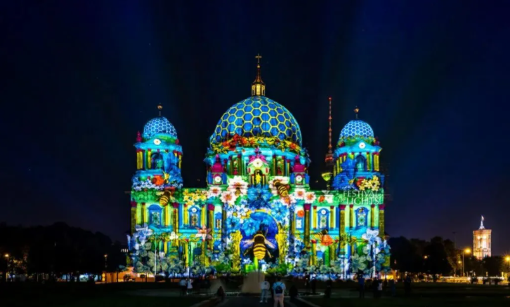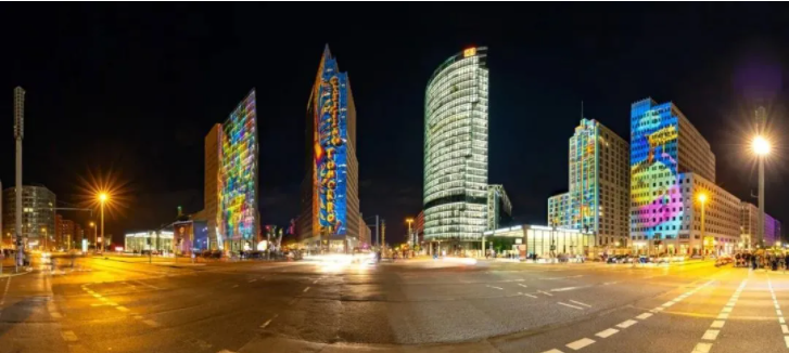 令人印象深刻的灯光映射作品将整个波茨坦广场变成了一个巨大的露天画廊,集中阐明了可持续性、未来、科学、人性和多样性等主题。