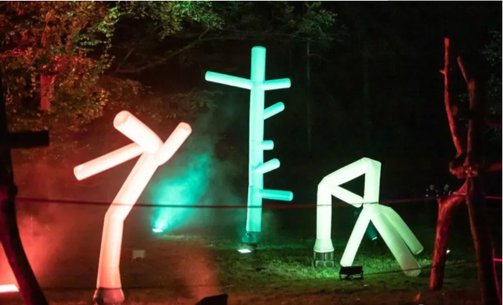 LED 装置遍布草地四周,它们似乎在通过闪烁灯光与游客进行交流。