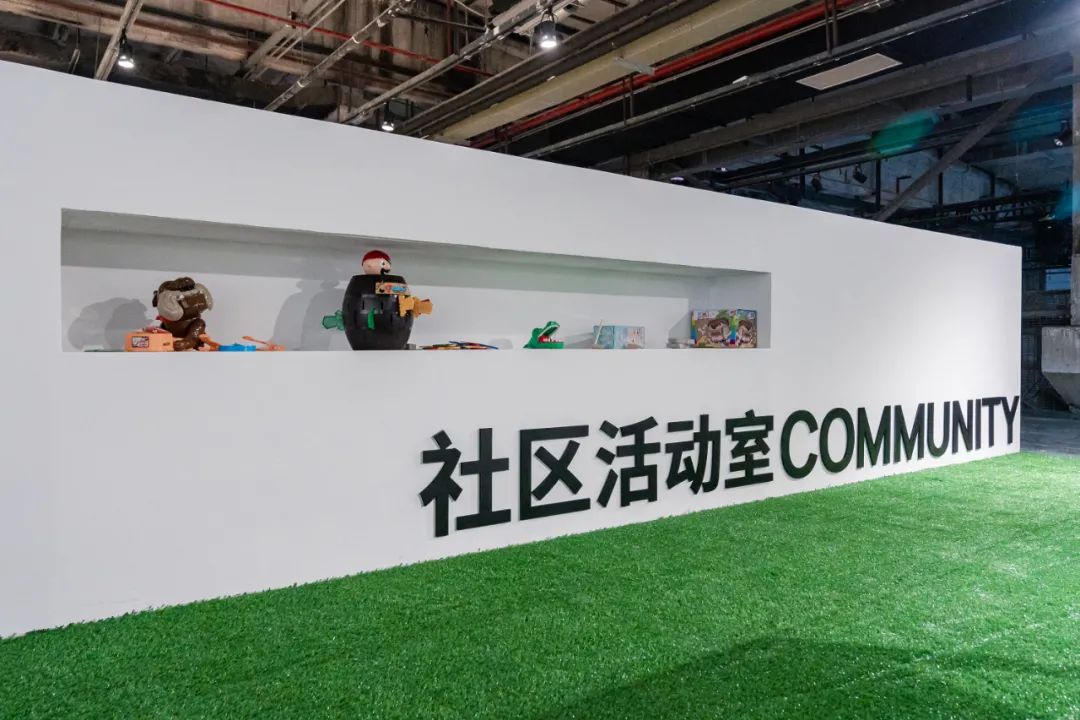 二层比较舒适的一个地方是美术馆的社区活动室,这里不仅有懒人沙发、桌子和玩具,还延伸出一个空中花园和一个排练房。这里展示了若干明当代美术馆过往的社区项目精选,包括“广场舞计划”和“社区剧场”等。“社区剧场”也是明当代美术馆主要公共教育活动之一,让大众成为艺术表达的主体,为社区创造活力与温度。展演季期间,这里也会有一系列活动发生。