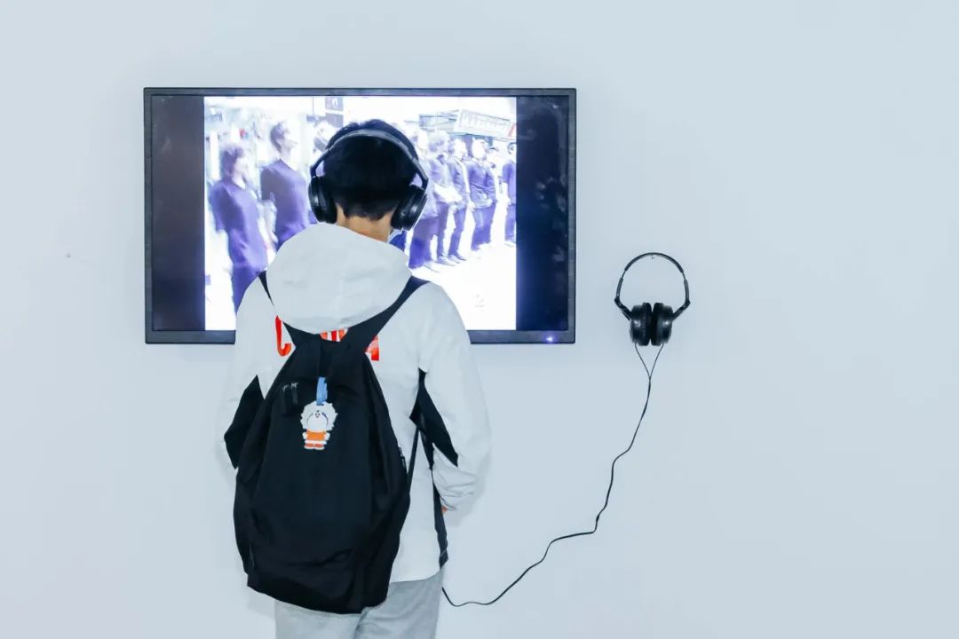 ▲ 观众在观看周滔的作品《1234》 图片来源:明当代美术馆