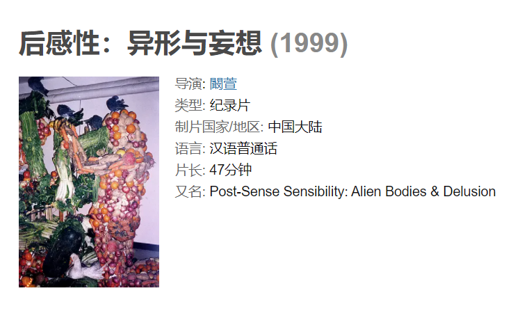 ▲ 纪录片《后感性:异形与妄想》图片来源:豆瓣电影