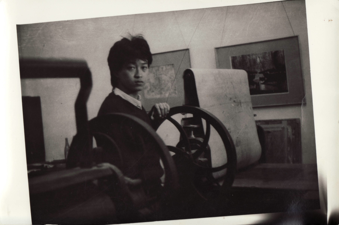 冯梦波在中央美术学院王府井校区铜版工作室,1998