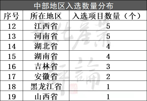 此外,其余22个省会城市(含首府),除了山西太原市、江西南昌市、海南海口市无入选项目,河北石家庄市、黑龙江哈尔滨市、安徽合肥市、贵州贵阳市、甘肃兰州市、青海西宁市及新疆乌鲁木齐市、宁夏银川市、内蒙古呼和浩特市、西藏拉萨市各入选1个项目外,余下省会的城市均有2个项目入选。省会城市间的差距一目了然。