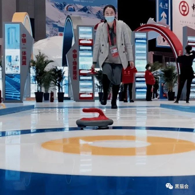 这届进博会特别设置北京冬奥互动区,超200平方的炫彩冰场,展客可以体验冰上乐趣。