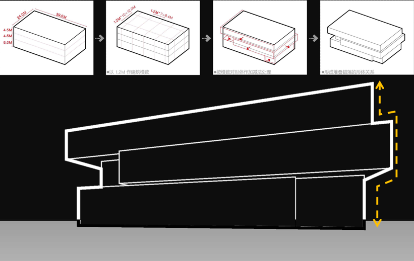 建筑设计按照模数作形体的加减法处理,形成堆叠错落的体块关系。